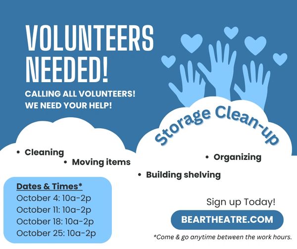 It takes a lot of hands to craft a theatrical production. We have set builders, painters, set dressers, sewing projects, prop shoppers, ushers, etc. No matter your skill, there's something you can do to help produce a show. The best part is, theatre people are a family, and we invite you to join ours!